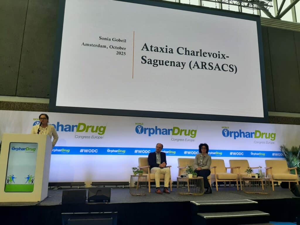Last November, Charlevoix–Saguenay Ataxia Foundation was brilliantly represented at the World Orphan Drug Congress in Amsterdam. As speakers, Drs. Francesca Maltecca, Daniele De Ritis, Bart van de Warrentburg, and Sonia Gobeil shared their expertise and unwavering commitment, helping to spotlight ongoing research and bring hope to individuals and families affected by this rare disease.