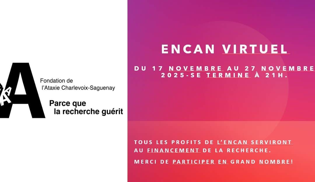 Une occasion idéale dans le cadre du Diner des Producteurs 2025 de dénicher des lots exceptionnels tout en soutenant la recherche. Nouveauté cette année : vous pouvez faire un don directement pour financer un essai clinique pour l’ataxie Charlevoix- Saguenay.